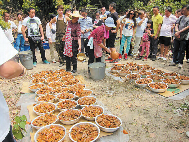 這次吃山頭共有43個盆菜,打盆時間只用了10分鐘就完成。