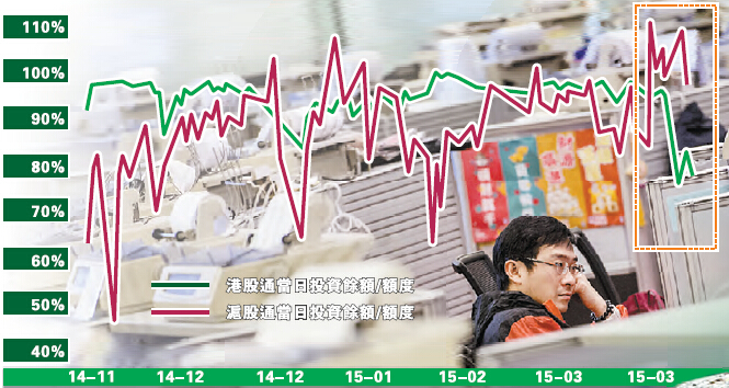 因復活節和清明節連續休市的港股,一復市便出現了火爆行情,恒生指數跳空高開,幾乎毫無阻力地突破26000點,最終以26236點報收,創7年新高,並出現了自滬港通開通以來首次用完單日額度的現象。昨日,內地資金南下吸納港股的熱度持續發酵,恒指漲幅逼近7%,最高上探27922.67點。開盤不到一小時,港股通當日額度已用掉一半,截止下午1點46分,105億元額度再度提前用完。港股通額度的首次用光對於市場來說意義重大,因為自2014年11月17日滬港通開通以來,此前港股通最大淨買入還只是25.59億元,港股通全年2500億元的額度在此之前也才用了384億元,額度基本上都是富余很多。3月24日,滬股通和港股通出現逆轉,港股通淨買入連續8個交易日超過滬股通,資金南下已成主流。鑒於目前形勢大為改變,港股市場火爆,港股通額度已面臨不足。有消息稱,滬港通額度調整已在研究中,此前監管層已召集券商召開過座談會,探討提升額度問題。對此,接受本報采訪的中國人民大學財政金融學院副院長趙錫軍認為,調整港股通額度應先去分析目前的火爆局面是長期性的,抑或短期的臨時變化,對兩地的市場會產生正面影響還是負面影響,如果單單只是這一兩天投機性的炒作所產生的火爆就沒有必要去改變額度,如果確實是由於投資熱情高漲能帶來持續性的高額度投資則有必要放寬額度。在市場機構經營評估以後才能提出關於額度調整比較好的政策建議供決策部門參考。