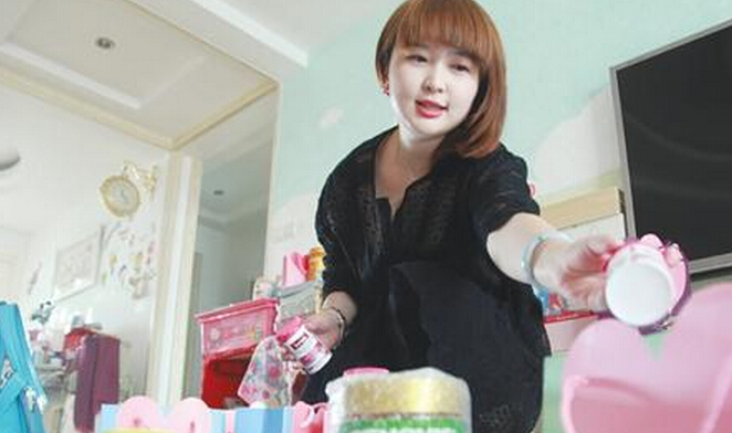 推开她的家门,瞬间吸引我的不是眼前这个漂亮的女神,而是家中的设计样式。墙面上贴的是胖大星、海绵宝宝、hellokitty等卡通形象;客厅一角放置着10多个印有粉桃心的漂亮手提袋,里面放置的是她为客户准备的产品。