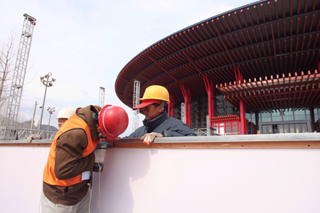第五届北京国际电影节将于4月16日在北京燕栖湖国际会展中心开幕,工作人员在紧锣密鼓地为盛会开幕进行准备。