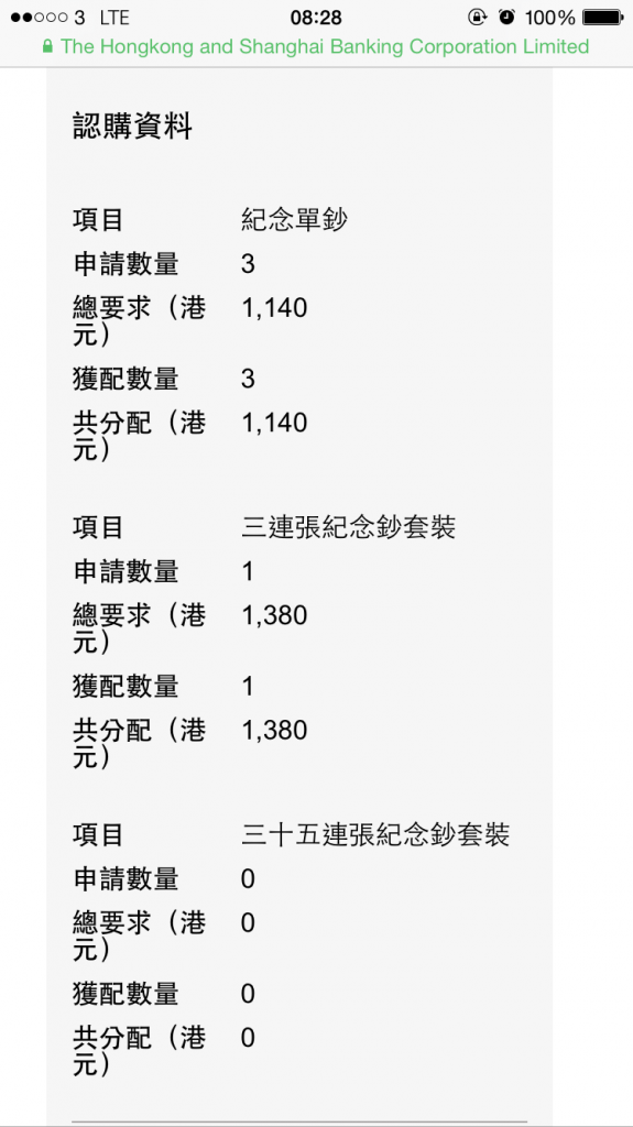 今晨滙豐網站恢復正常,認購者憑身份證或護照號碼,以及電話號碼即可查閱結果。認購成功的申請人將於今日至24日,收到滙豐的確認通知書,並須在下月7日或之前全數繳付款項,之後在6月9日至28日的指定日期、時間及地點親自到場領取。