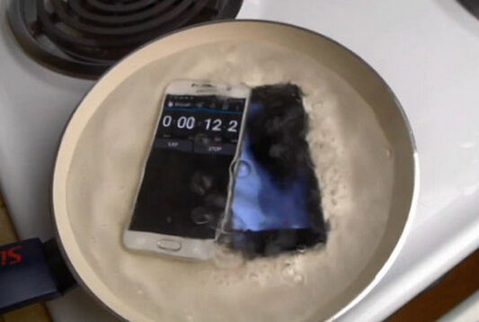要說外媒真的是非常的喪心病狂,iPhone 6剛出的時候冒出了各種掰彎手機摔碎手機的視頻與照片,而如今他們又把iPhone 6和三星GALAXY S6一起放在熱水里煮了,就為了看看誰能撐到最后。