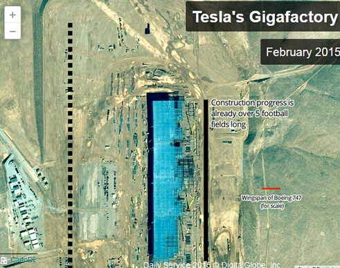 特斯拉的這一電池工廠於去年7月動工。到目前為止,特斯拉並未公布關於這一工廠建設的更多詳情。而此次CartoDB提供的衛星照片使外界能窺見特斯拉這處工廠的建設情況。