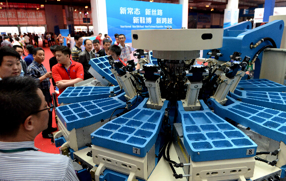4月19日,第十七屆中國(晉江)國際鞋業博覽會在晉江舉行。隨著工人工資不斷提高,傳統勞工密集型的產業優勢在削弱,鞋企若要追求發展,更需要高精尖的制鞋機器。