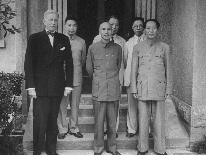 1945年,国共政要在重庆进行联合抗日的谈判。资料照