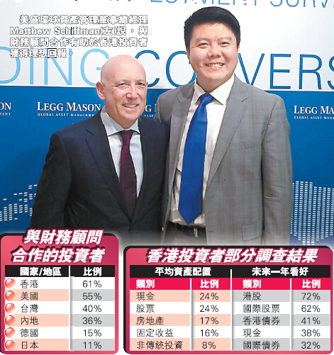 香港投資者的另一特點在於重視財務顧問的意見,有六成人士選擇與財務顧問合作,大幅高出環球平均36%的水平。Matthew Schiffman指出,這將幫助他們捕捉自己難以發現的投資機會,了解不同的投資產品,以及締造更好的投資表現。此外,社交媒體亦被香港投資者視為可以信賴的資訊來源之一,在作出海外投資決策時,有兩成人士會在一般社交媒體平臺上獲取信息。