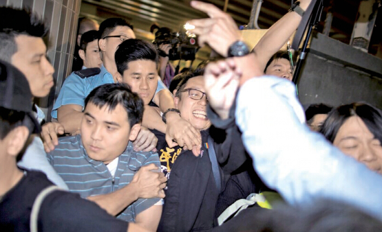 反对派激进分子前晚狙击落区特首和议员,遭到在场警员阻挡。