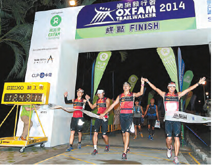 毅行者四人一隊,要完成100公里的路程,講求「nevergiveup」,「四個人、八隻腳、一條心」。