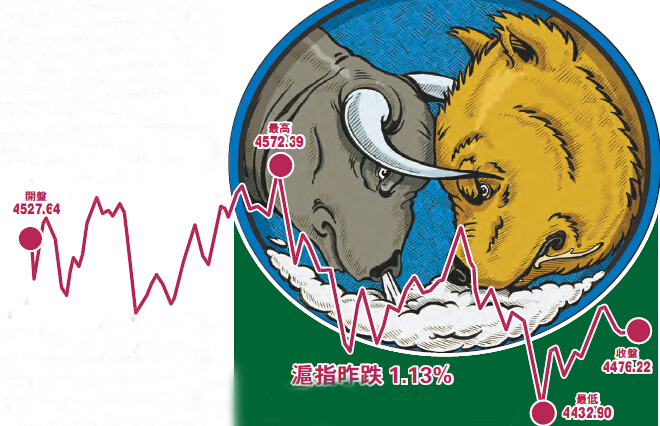 【香港商報網訊】周二滬深兩市雙雙高開,滬指早盤寬幅震盪,午后開盤受證監會提示投資風險影響,兩市再度快速下探,盤面上二八分化加劇,中小板、創業板出現較大跌幅。成交量方面,上海股市成交10612億,再次突破萬億大關;深圳股市成交6405億。上證指數收報4476.21,下跌51.19或1.13%;深成指收報14707.25,下跌102.17或0.69%;創業板指收報2687.97,下跌59.52或2.17%。