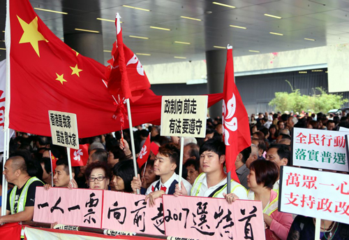 其實這些指控顛倒黑白。中央政府一直嚴格遵循憲法和基本法行使權利,嚴格依法辦事,這是維持本港穩定繁榮的基礎。人大「831決定」正是在本港重大政制發展出現嚴重分歧時,中央循法定程序行使主導本港政制發展的法定憲制權利。而人大「831決定」的核心內容,是落實基本法規定的政制核心原則「各界權益均衡」,維護提委會提名權完整準確貫徹。
