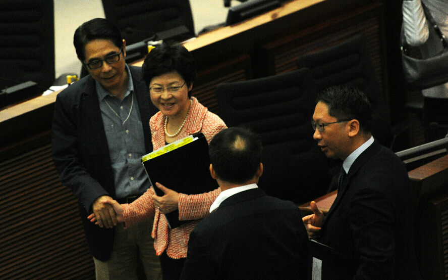 政務司司長林鄭月娥、律政司司長袁國強,以及政制及內地事務局局長譚志源昨出席了會議。林鄭月娥表示,希望能按計劃在立法會暑假休會前表決政改方案,并重申兩點。第一,她稱自政府公布政改方案后,各界表達很多意見,當中有支持亦有反對,相當分歧;她強調,政改必須符合《基本法》、人大常委會相關決定,這樣才能貫徹落實「一國兩制」,符合香港作為直轄於中央人民政府的地方區域這憲制地位。