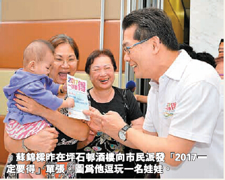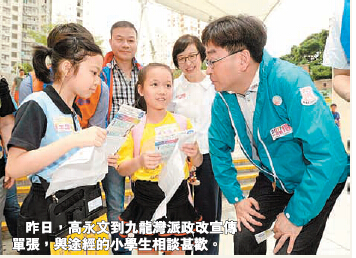 昨早,高永文到牛頭角上下邨派發宣傳單張,並跟市民包括小孩交流,氣氛大致良好。