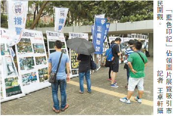 家庭主婦陳小姐特意偕9歲的兒子到場觀看占中相片展。她批評「占領行動」教壞年輕人,變相呼吁他們挑戰法治,犯法「都唔會被拉」。來自深圳的訪港游客黃先生路過相片展時亦駐足觀看,他指自己來港旅游8次,但自從去年「占領行動」爆發之后,訪港的內地游客便大幅減少。