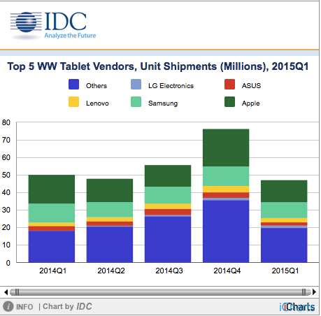 盡管平板電腦暫時還不會像Zune或MiniDisc Walkman一樣被拋棄,但很明顯,用戶正在失去對平板電腦的興趣。第一季度,全球范圍內平板電腦和“2合1設備”(可以同時作為平板電腦和筆記本使用的設備)出貨量同比下降5.9%,至4710萬台,低於去年同期的5000萬台。