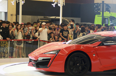 《速度与激情7》豪车亮相天津车展 。 5月2日,适逢五一小长假,天津国际车展正在梅江会展中心举行,迎来客流高峰。电影《速度与激情7》中价值9500万的豪奢跑车Lykan Hypersport亮相,吸引无数人惊羡的目光。