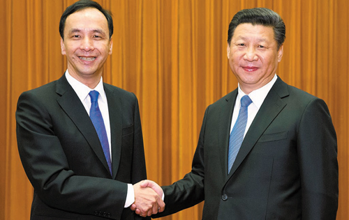 中共中央總書記習近平,昨在京會見中國國民黨主席朱立倫。這是國共領導人時隔6年之后的再次會面。習近平提出攜手建設兩岸命運共同體的5大主張,進一步鞏固深化了「九二共識」的共同政治基礎,對兩岸關系和平發展的正確道路,進行了極其重要的再確認,凸顯了對兩岸利益深度融合,擴大兩岸民眾特別是青年人交流往來的高度重視,亦傳承和加強了國共友誼。「習朱會」展現謀中華民族整體利益、造福兩岸同胞的情懷,為兩岸關系開拓前行注入新動力、開創新局面,意義重大。