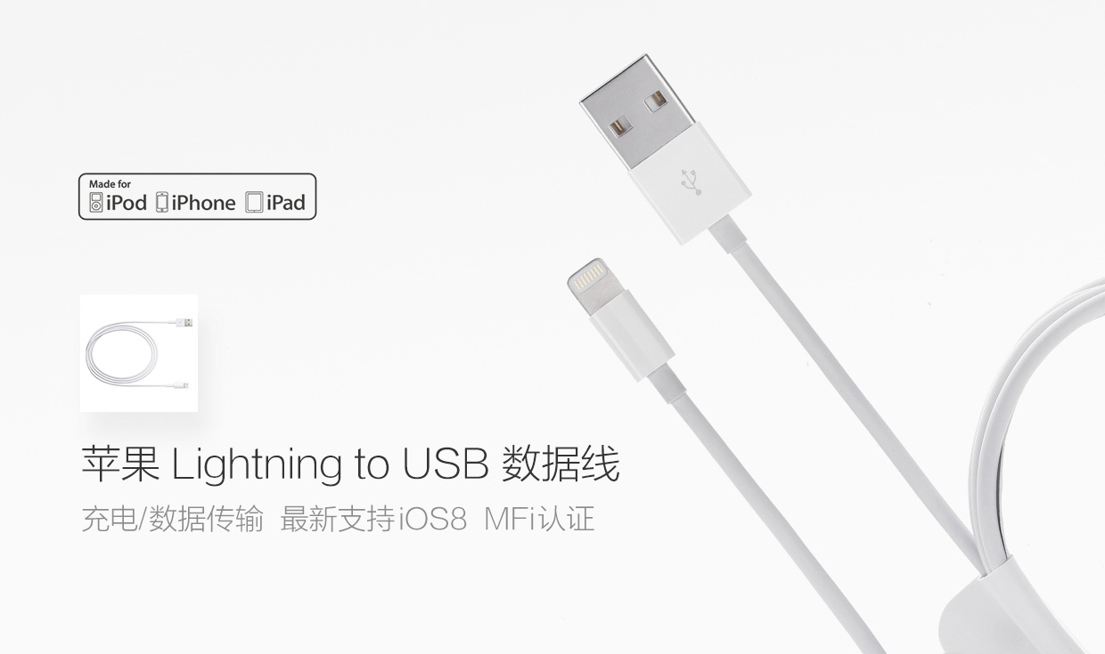 據了解,這款小米Lightning線長度為1米,並且通過了蘋果的MFi認證,選用蘋果原裝的8針C48端子頭, 支持5C/2.4A電量輸出,兼容配有Lightning接口的全新蘋果產品。整體外觀與蘋果原裝數據線幾乎一模一樣。