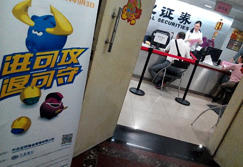5月13日,福州一證券交易營業網點,每天都有許多新股民前來開戶,加入的炒股大軍中。