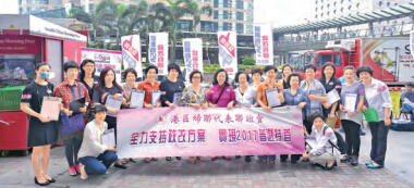 港区妇联代表联谊会会长叶顺兴表示,上周六起已在九龙及新界各区摆设街站,港岛区则是昨午首次摆设街站。她认为,泛民应尊重现时本港的实际情况,包括香港的政制发展须符合《基本法》及人大8.31决定,亦应尊重香港市民的意见,因各个民调均显示有六成以上支持方案。她续说,妇女界认为,政改方案若能通过,2017年能一人一票普选特首,将会是历史性的一刻,从殖民地时期至回归至今从未有过一人一票选特首,故应珍惜这个机会。她期望社会各界能停止政制方面的争拗,让本港民主发展有一个起。她说,政改若能通过,民主政制向前迈进,对香港的经济、民生均带来好处。香港中小型律师行协会创会会长陈曼琪认为,政改一旦通过将会是中国及本港的民主发展的里程碑。她说,不少街坊及市民均反映,希望能够自己有票选特首,强调与1200人的提委会相比,500万合资格选民一人一票选特首是一大进步,而且民主是一个过程,能够开始尤其重要。对於泛民坚决否决政改,她感到无奈,直指他们的坚持是窒碍了民主能够历史性踏出第一步,抹杀了香港500万选民的投票权。