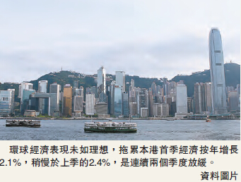 【香港商報网訊】記者林德芬報道﹕環球經濟表現未如理想,拖累本港首季經濟按年增長2.1%,稍慢於上季的2.4%,是連續兩個季度放緩,增長主要受內需帶動,但受到訪港旅客增幅放緩影響,外部需求依然疲弱。署理政府經濟顧問歐錫熊指,政府考慮到外圍與本地情況都存在不穩定因素,故維持全年經濟增長1%至3%的預測,是一個較大的範圍。