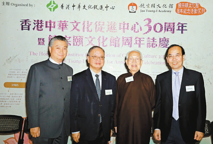 5月8日當晚的周年志慶酒會盛況空前,逾百名嘉賓好友舊雨新知共聚一堂,一起見證這個既開心又溫馨的時刻。香港中華文化促進中心理事會及饒宗頤文化館管理委員會主席李焯芬教授指出中心過去30年均籌辦過無數代表性的文化活動,如:「黃河音樂節」、「敦煌吐魯番學術會議」、「二十一世紀中華文化世界論壇」等,全力推動中華文化的發展,切合了饒宗頤教授所言:「二十一世紀是中華文藝復興、走向世界的時代。」