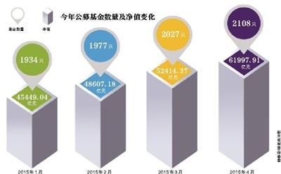 根據中國基金業協會官網微信昨日公布的數據顯示,截至今年4月底,我國公募基金資產首次突破6萬億元大關,達到6.2萬億元,比3月底暴增9583億元,單月增幅高達18.28%,月度增長規模為歷史之最。