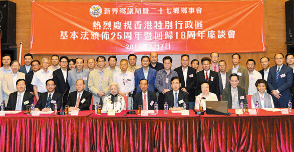【香港商報網訊】新界鄉議局5月7日舉辦慶祝基本法頒布25周年及香港回歸18周年座談會,回顧當年起草基本法的歷程。鄉議局主席劉皇發表示,基本法起草過程不斷地傾聽和整合香港社會各界關切和意見建議,具有廣泛的代表性和合理性,《基本法》第40條確保了原居民合情合理合法權益。與會嘉賓原基本法起草委員會委員譚惠珠以「關公戰秦瓊」,說明中國古代蜀國大將關公與隋末大將秦瓊之戰只有同一個時空和朝代才發生,藉以表明今時政改,大家欲和諧爭取民主,共同的平臺就是《基本法》。基本法委員會副主任梁愛詩則重申不可能撤回人大8.31決定,若反對派仍堅持,只會令香港人的普選落空,將來管治及施政更困難。