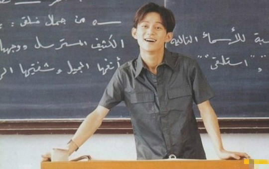 何炅早年在北外教授阿拉伯語,照片中何炅表情青澀,文質彬彬,工作態度認真。