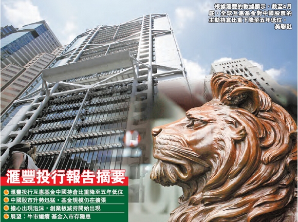 根據EPFR及匯豐的數據顯示,截至4月為止,全球互惠基金對中國股票的主動持倉比重下降至五年低位,報告稱原因為中國股市升勢迅猛,已快於基金入市速度。從大局來看,全球基金也從之前的強勢轉為謹慎。相比起三個月之前,他們對所有新興亞洲市場的敞口均降至「中性」或「減持」。在眾多市場之中,基金只提高對香港和新加坡兩個市場的倉位,但相對其他市場,香港和新加坡仍是「減持」。