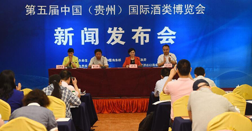 5月27日,第五届中国(贵州)国际酒类博览会新闻发布会在北京举行。中国(贵州)国际酒类博览会由商务部和贵州省人民政府共同主办,本届展会将于9月9日在贵州举办,共设置7个展馆,总面积达72000平方米,目前意向参展的酒商酒庄900余家,采购商3000余人。新华社记者金良快摄