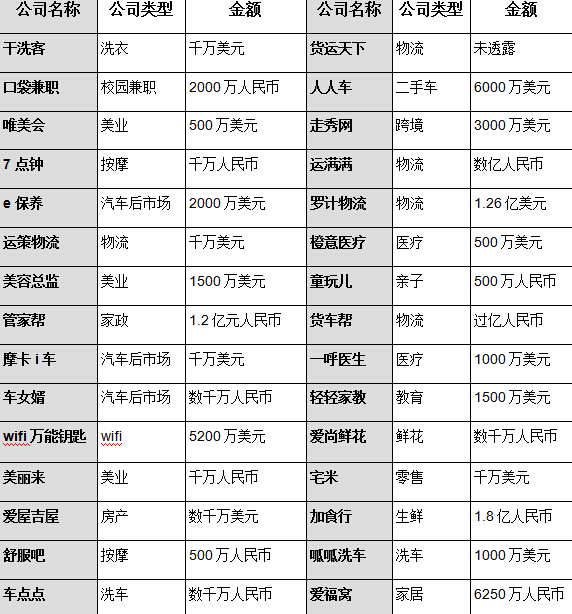 河狸家絕非孤例,據粗略統計,僅2015年5月,主打O2O概念完成融資並被公開報道的公司就超過了30家,總金額超過4億美元加5.6億人民幣。