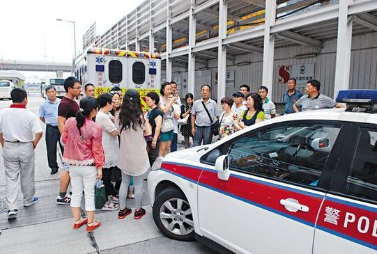 有團員見狀不滿,雙方發生爭執。期間王姓團友用手拍打女導游手機,導游楊某事后報警稱左手疼痛。警方到場后安排其送院檢驗,之后又將涉事團友王某帶走。其余團員不滿警員拉人,十多人包圍警車阻止其離開,警方遂要求增援。