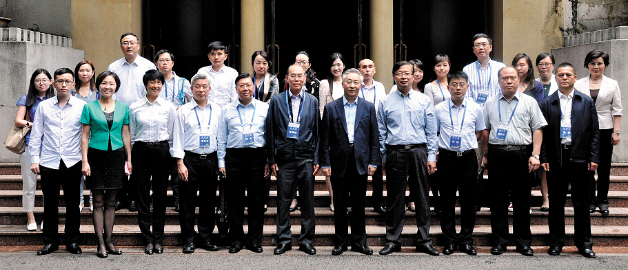 重庆市委副书记张国清(前排右五)与港澳传媒高层赴渝参访团举行座谈并合影。