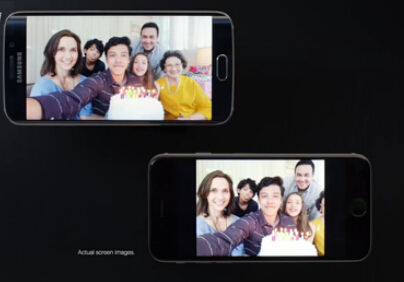 接著,三星還在廣告中提及了iPhone 6所無法完成的另一項工作,即廣角自拍功能。三星S6 Edge擁有一個500萬像素、120度廣角前置攝像頭,因此可以拍攝出足以橫向鋪滿整個屏幕的圖片,但iPhone 6的120萬像素前置攝像頭僅僅能拍攝出最高1280x980像素的圖片。