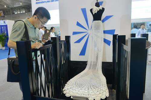 世界3D打印技术产业大会展出3D打印连衣裙。 6月3日,第三届世界3D打印技术产业大会暨博览会在成都启幕。展览吸引全球100多家3D打印企业参加,最新的工业级3D打印机、桌面级3D打印机、生物医学3D打印机和3D打印作品、材料等悉数亮相,该展览为当前全球3D打印行业规模最大的展会。图为参展企业展示的一件3D打印连衣裙。