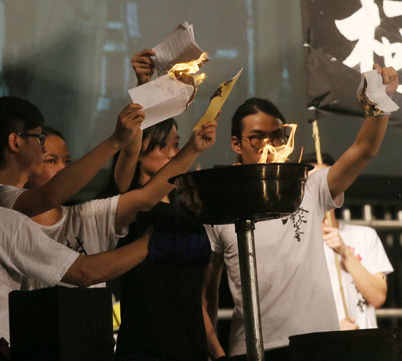 6月5日,有学生在活动中焚烧《基本法》