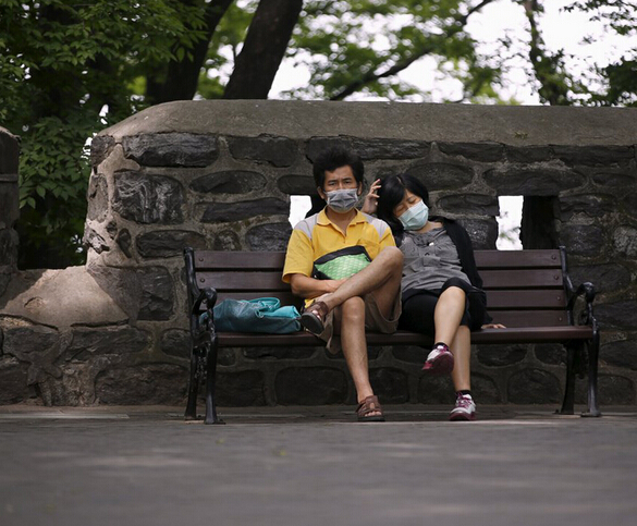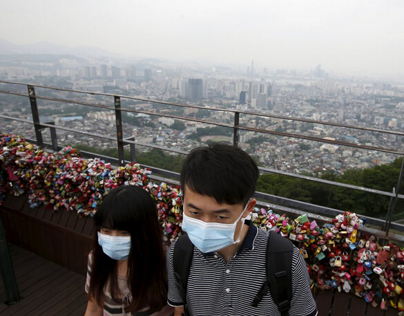 當地時間2015年6月8日,韓國首爾,遊客戴口罩防止感染中東呼吸綜合征(MERS)。