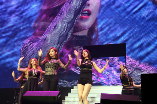 6月6日晚,由亚太日报及香港华菁会主办的“2015 香港青年音乐节”在香港会展中心举行。图为T-ara组合亮相献唱,让全场观众着迷不已。香港中通社图片