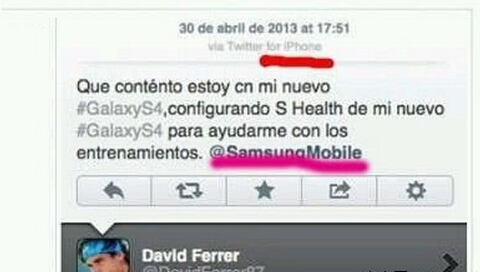 2013年三星聘請西班牙網球明星費雷爾為Galaxy手機代言,結果雖然費雷爾在其推特上大力推廣Galaxy S4,但他發推文用的設備竟然是iPhone。