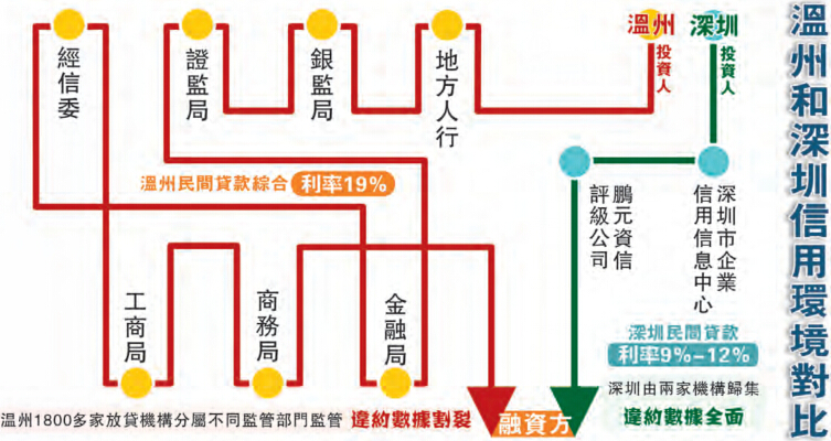 溫州政府認為,只要登記備案就會相應規範借貸手續,譬如借貸雙方要簽訂規範的合同,明確抵押物等,過去那種數百萬乃至上千萬元的借款不打借條、只一個電話「搞定」的現象不會再重演。有了登記備案,借入人的借貸行為被納入政府徵信系統,其信用表現無形之中受到約束,從而使出借人的資金得到多一層的安全保護。有登記就有監管,它將民間借貸行為「逼」進政府監管的「籠子」,這成為防範和化解金融風險的有效途徑。