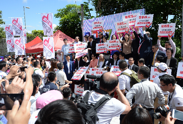 香港团体在立法会外集会 支持政改方案。中新社