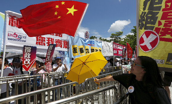 挺政改方案与持相反意见的人士在立会大数外对峙。路透社