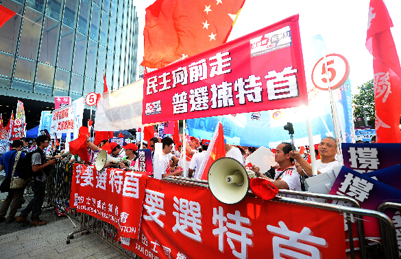 江苏旅港同乡联合会会长、中华总商会副会长马忠礼批评,泛民否决方案,是从市民手中抢走普选行政长官的一票。浙江省同乡联合会副会长詹洪良亦率队到场撑政改,他批评泛民若否决方案,将成千古罪人。广东社团总会副会长何毅强斥责泛民「乜都反对」,剥夺全港市民一人一票选特首的权利。