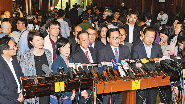 建制派議員昨于會後回應集體離席的原因,並對反對派否決政改方案表示憤怒及遺憾。