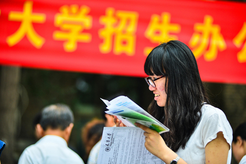 6月24日,在天津大学的校园开放日活动中,一名考生在阅读专业院系介绍材料。