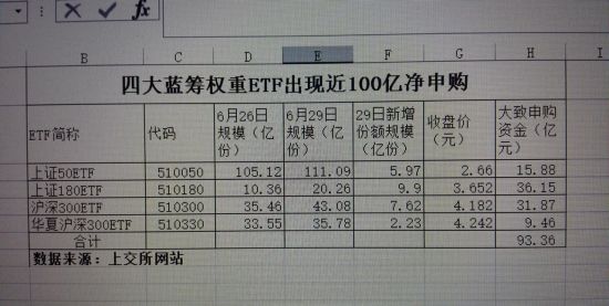 不過,值得注意的是,上交所剛剛公布的規模信息顯示,6月29日周一滬市四大藍籌ETF一起出現大幅凈申購,合計資金流入規模高達100億元,ETF單日出現如此大的申購規模,實屬罕見。顯示已經有神秘資金抄底股市。