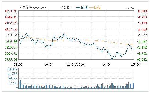 截止收盤,滬指報3912.77點,跌140.93點,跌幅3.48%;深成指報12924.19點,跌726.63點,跌幅5.23%;創業板報2649.32點,跌110.09點,跌幅3.99%。