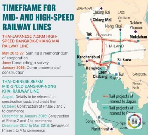 據不愿透露姓名的參加談判的官員透露,第一期坎桂-曼谷133公里鐵路已完成可行性研究,最早有望在今年10月開工,將在2017年年底投入運營。