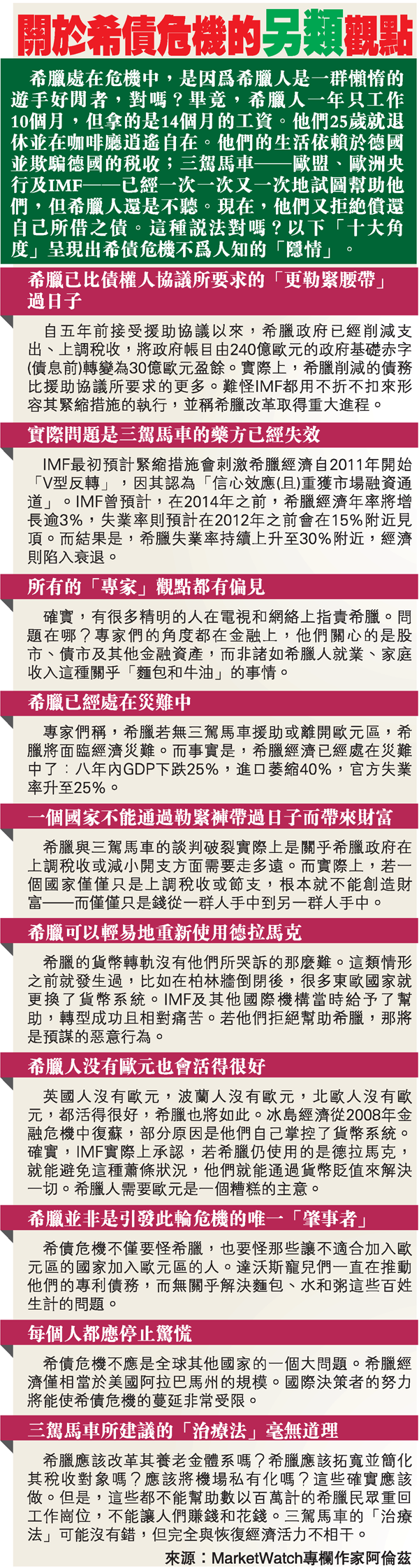 繼周二表示願有條件接受債權人的救助協議之后,希臘總理齊普拉斯在周三晚些時候發表的講話中,又再次表現出強硬立場,指責債權人試圖「敲詐」希臘,并繼續呼吁民眾在公投中對債權人的要求投下反對票。齊普拉斯立場的出爾反爾引發債權人愈發不滿。歐元集團已決定,在希臘公決之前停止債務談判。歐元集團主席戴塞爾布盧姆更發出迄今最強硬警告,若希臘公投說「不」,債權人將不再與希臘進行新的談判,希臘將失去在歐元區的根基。雙方的強硬表態令希債危機前景更顯撲朔迷離。香港商報記者 郭志文