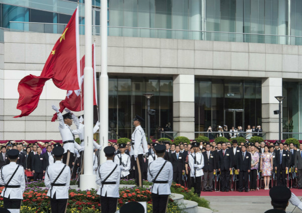 7月1日,香港特区政府在金紫荆广场举行升旗仪式,庆祝香港回归祖国18周年